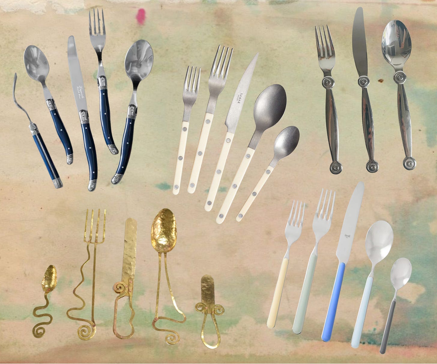 For this issue’s sake, I’ll remind that flatware is used daily. Poorly made sets will rust and bend. Good flatware is with you forever. A great collection can be built with thrifted stainless steel pieces like this mismatched butter knife collection. If you’re buying new, Sabre and Languiole are French classics, Mepra are Italian-made and playful, Mono and this Soho Home set are more modern and clean. I personally gravitate toward traditional design with an understated twist, like this Corby Hall set. Stay away from gold and black sets, or any wood handles. They’re trendy but not timeless and won’t wash up well.